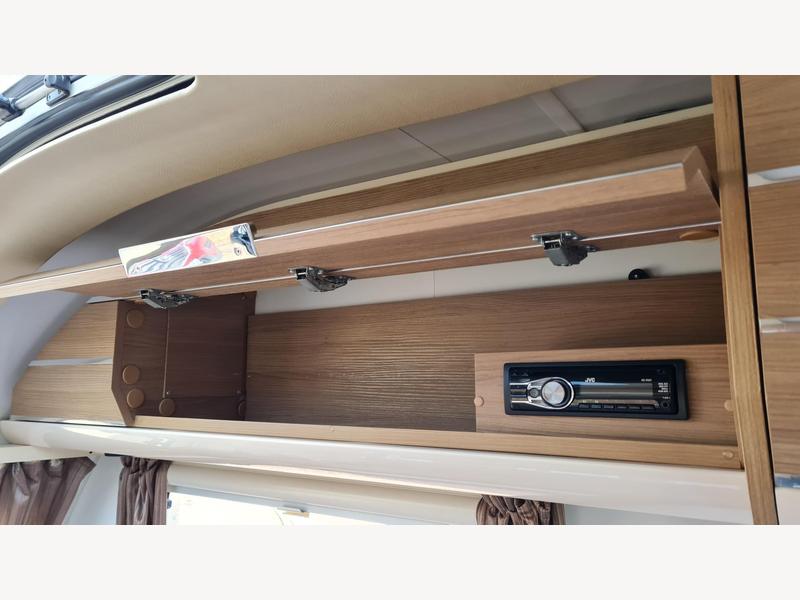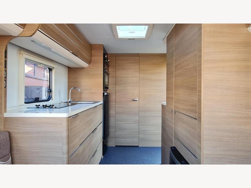 Fully serviced (April 2024) with gas and electrical safety check plus brand new tyres. A luxury 2-berth caravan in fantastic condition. Spacious, bright and modern interior with wrap around seating and large windows. Two roof lockers one with inbuilt radio/ CD player. Lift-up occasional table or 4 seat dining table to fit. Wrap sunroof fills the caravan with light. All windows and skylights have both fly screens and sun blinds. Lounge converts into spacious king-size bed measuring 1.54m x 2.12m. Under seat storage to store bedding. Off-side large galley kitchen area with 3-line hob, sink and 3 deep storage drawers with pull-out trolley. Roof locker contains microwave. Good sized oven, separate grill and tall fridge freezer. Large wardrobe with rail plus full height shelving. Night-time illumination includes LED integrated into sunroof surround. Corner spots and ambient lighting behind all roof lockers. Outdoor light. End washroom with opaque window, shower cubicle with vent and modern sink set in unit with large mirror and slim storage cupboards. Barn door style front door with inset window and doorway fly screen. Length 6.35m Internal length 4.6m Width 2.3m Internal width 2.17m Height 2.58m Internal height 1.95m. AL-KO tow hook with 13 pin electric connection. Thermobuild thermal insulation with interior airflow management. Truma Ultraheat fire provides central heating through either gas or electric. Truma Ultrastore Rapid GE hot water cylinder working off either gas or electric. Thetford N3000 fridge with small freezer compartment run off either gas or electric. Thetford oven with separate grill. Thetford C260 cassette toilet. Fireangel carbon monoxide detector. Ultrafire smoke alarm (new).LED ambient lights and two reading lights. EXTRAS INCLUDED- Powertouch classic motor movers- alloy wheels- spare wheel- AL-KO secure wheel lock- wheel arch inserts (exclude draft when awning used) - 230v external plug and BBQ point- aerial- additional TV socket and plug by window- microwave- carpets - 12v radio CD player- drainer for use with sink- roly-poly freshwater container - waste water kit.