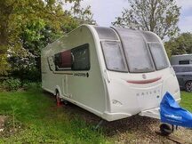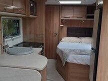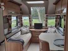 This spacious single axle caravan provides to ultimate in touring comfort and will suit couples looking for space and comfort or families with chidren. It has a spacious lounge with seats which can be used as single beds or a large double bed. There is also a super comfortable king size fixed bed which has a large storage area underneath. There is a well appointed kitchen with a large Dometic fridge and full width freezer compartment. A cooker with 3 gas rings and one electric hot plate, good sized oven and grill. There is also a Daewoo stainless steel 800 watt microwave oven. At the rear there is an end washroom which features a sink, Thetford cassette toilet with electric flush, a radiator and a separate fully sealed shower unit. The caravan also boasts an Alde central heating system, a fixed solar panel and a radio/cd/USB. Included are a power touch Classic motor mover, Alko secure wheel lock, Alko hitch lock, Aquaroll, Wastemaster, waste pipe, caravan step, hook up cable and two gas bottles. The caravan is CRIS registered and comes with all it's original owner's manuals. It has also recently been fully serviced and damp checked by an independent approved worksop specialist. New tyres were fitted in November 2022.